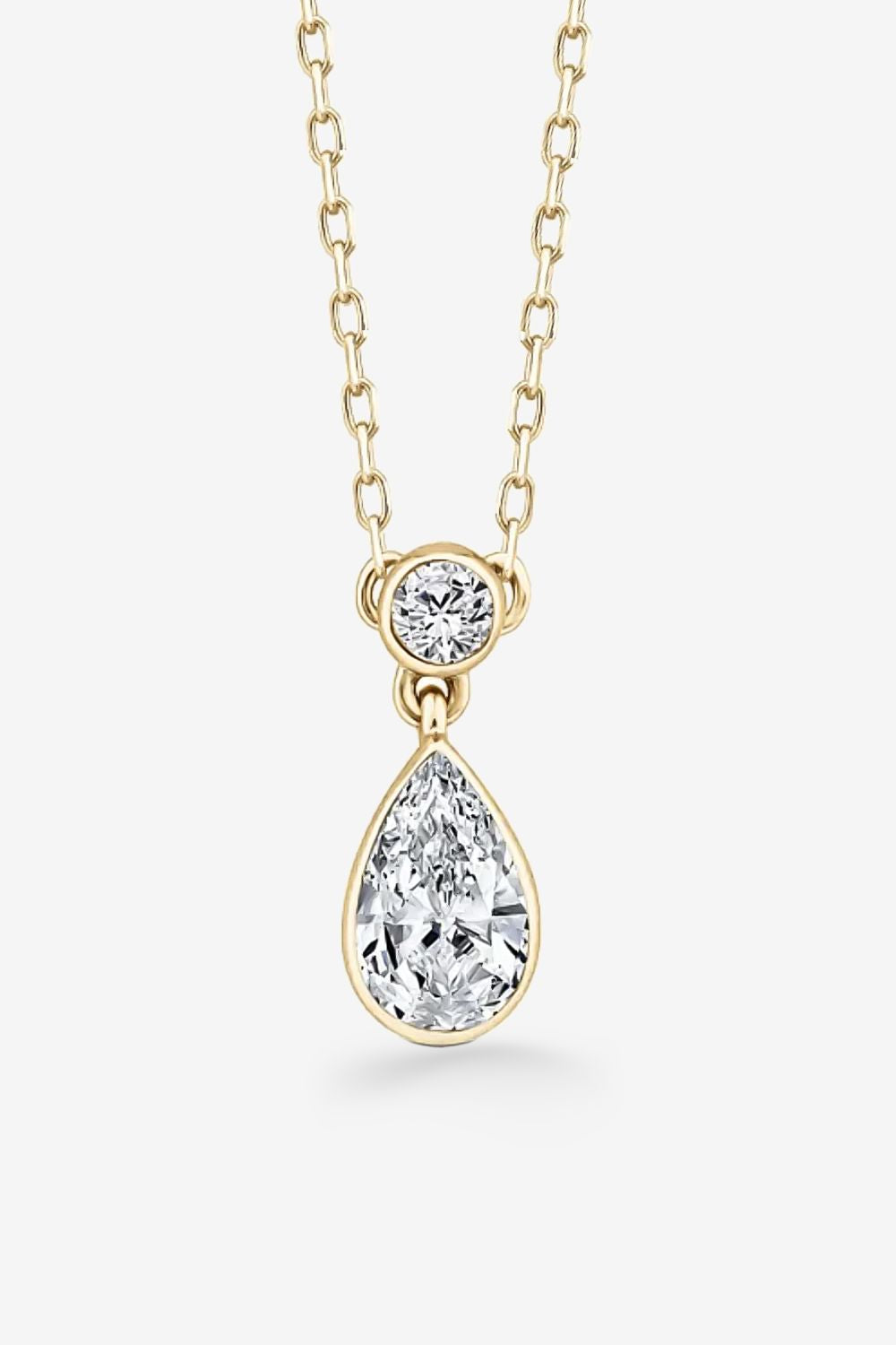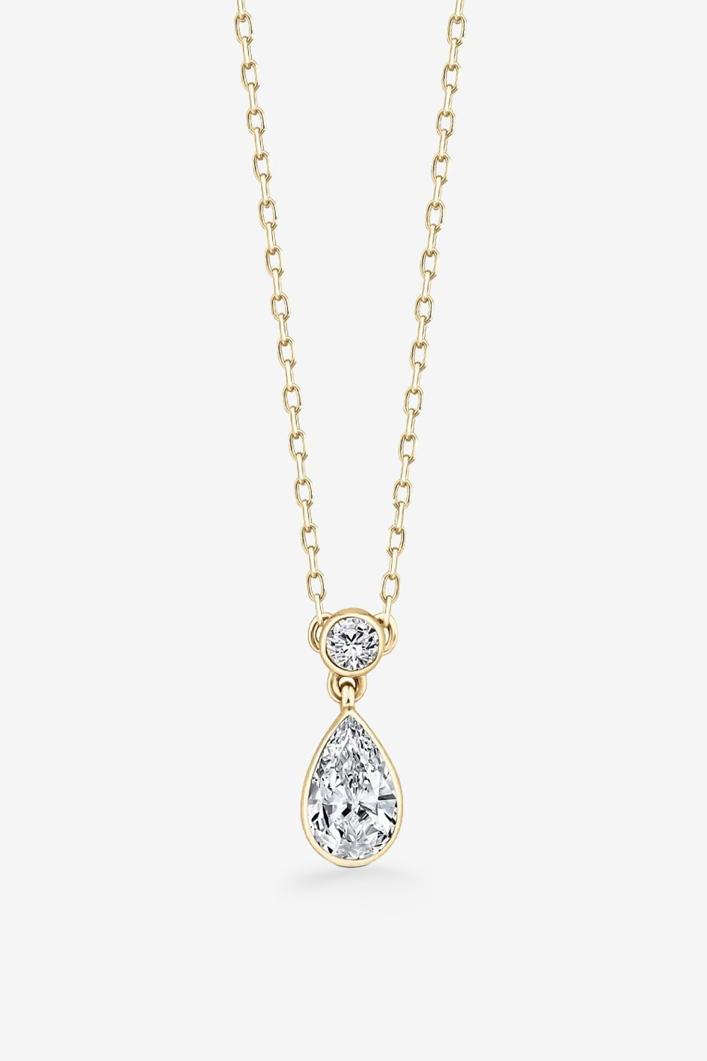 This graceful double drop pendant showcases the perfect marriage of classic and contemporary design. Two lab-grown diamonds—an elegant pear shape paired with a brilliant round stone—cascade beautifully from a 9k yellow gold setting, totalling 0.25 carats of F colour, VS clarity brilliance. The adjustable 40-45cm chain ensures a flattering fit for any neckline, making this piece as versatile as it is stunning. An investment that transcends trends and complements any wardrobe with quiet sophistication.