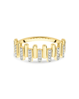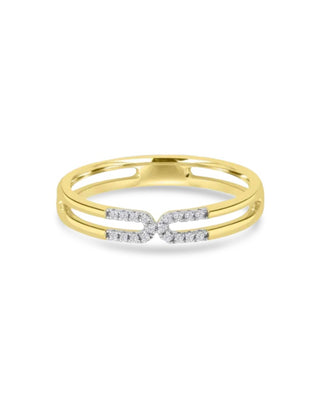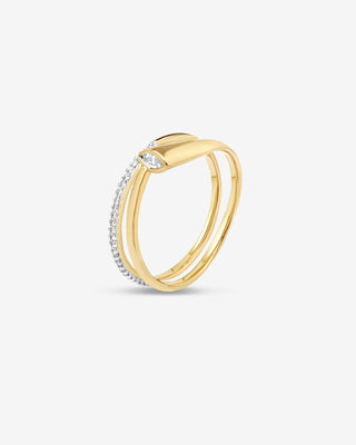 9k Yellow Gold Modern Offset Diamond Ring - Featuring Round & Marquise Diamonds