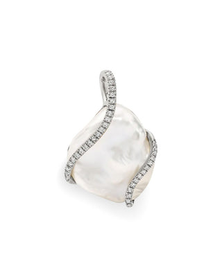 Sterling Silver White Edison 10.5-11mm Freshwater Pearl Cubic Zirconia Bar Bangle