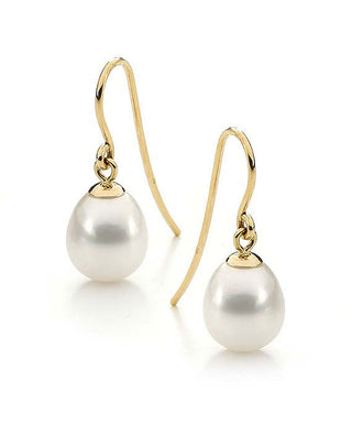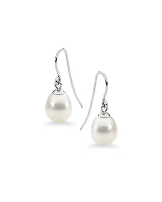 925 Sterling Silver 9-9.5mm White Freshwater Cultured Pearl Shepherds Hook Earrings