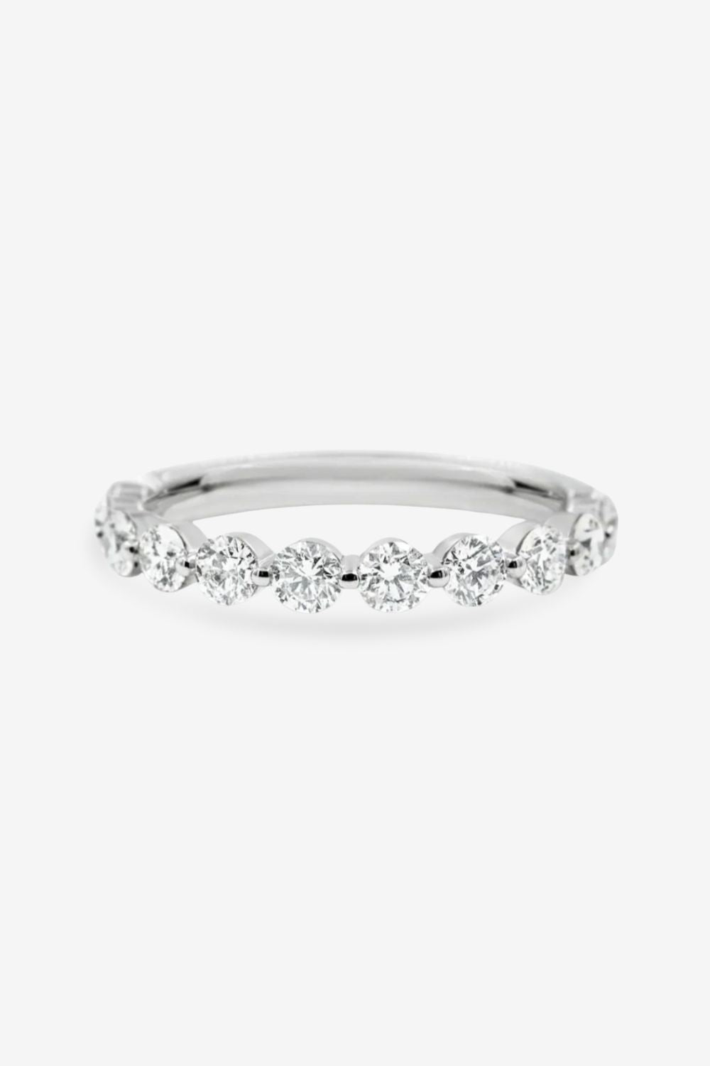 A bold yet refined expression of brilliance. Leah showcases a seamless stream of large round brilliant-cut diamonds in a bubble-inspired setting, crafted in luminous 18k white gold.