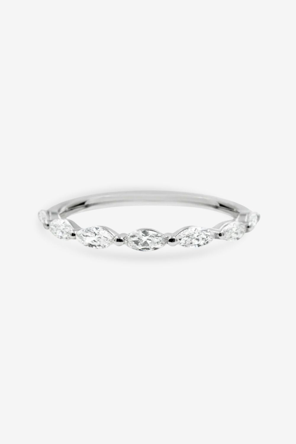 Elegance in every angle. Gracie features seven marquise-cut diamonds in a clean, streamlined silhouette, crafted in polished 18k white gold.