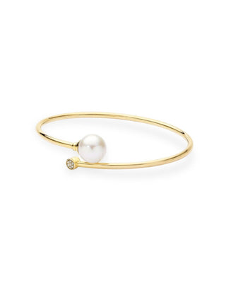 9k Yellow Gold White Edison Freshwater Cultured Pearl & Round Diamond Cluster Bangle