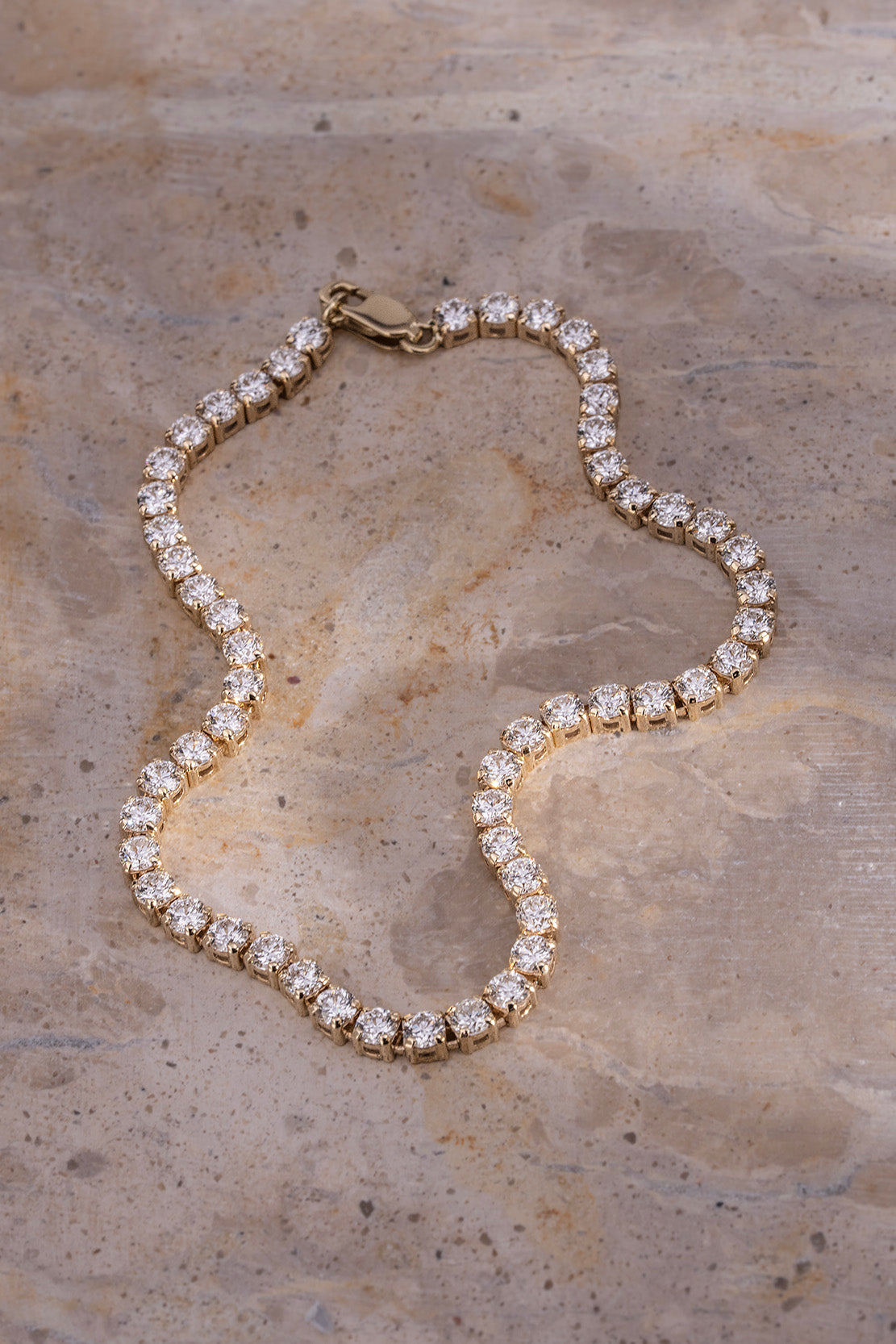 A striking statement in warmth and brilliance. This 10k yellow gold tennis bracelet showcases 3.85 carats of lab-grown diamonds, perfectly set for continuous sparkle.